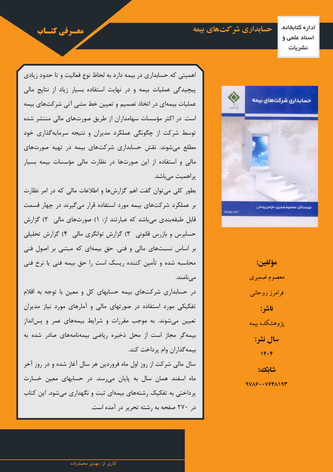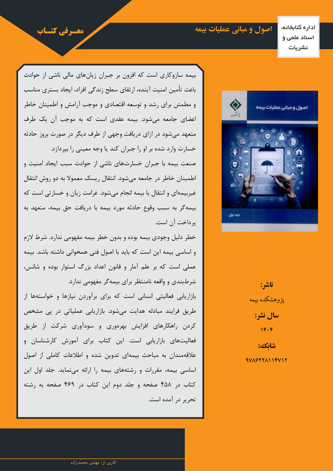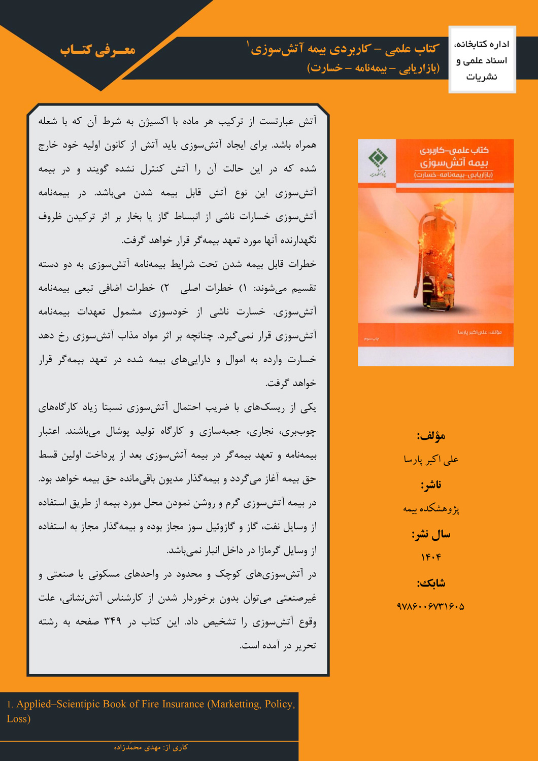 كتاب علمي – كاربردي بيمه آتش سوزي (بازاريابي – بيمه نامه – خسارت)