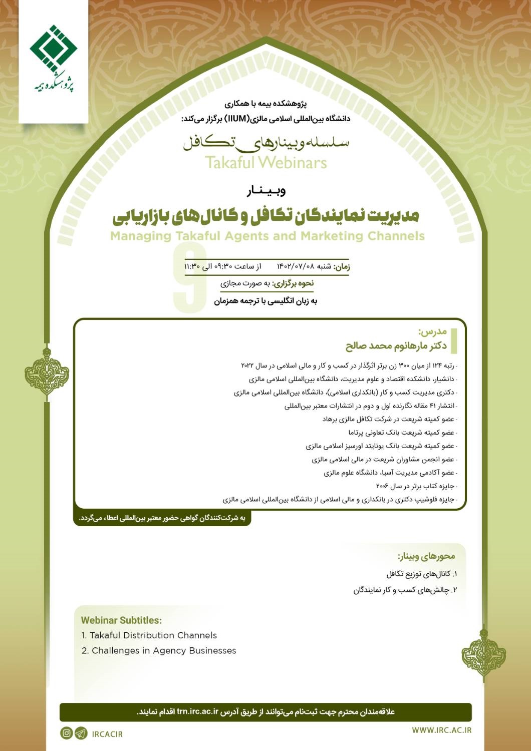 اولین جلسه از مجموعه وبینارهای تكافل با موضوع حاکمیت شریعت در عملیاتهای تکافل مالزی؛ درسهایی برای اجراییسازی تکافل در ایران