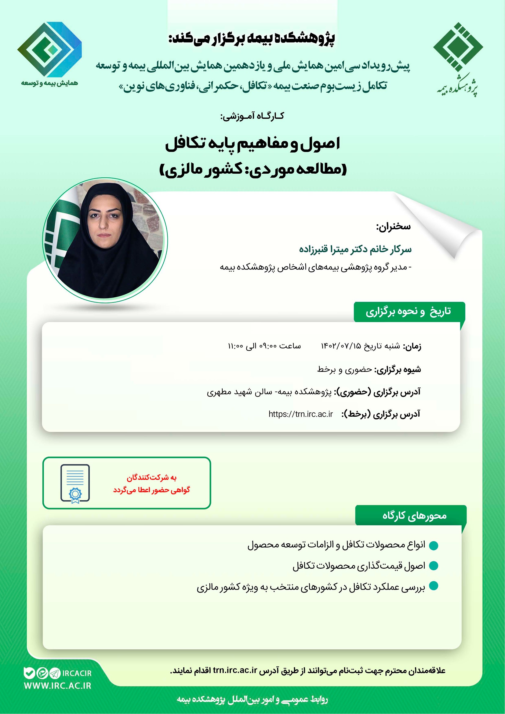 دومین كارگاه‌ آموزشی پیش‌رویداد همایش بیمه و توسعه 1402 با عنوان اصول و مفاهیم پایه تكافل مطالعه موردی كشور مالزی