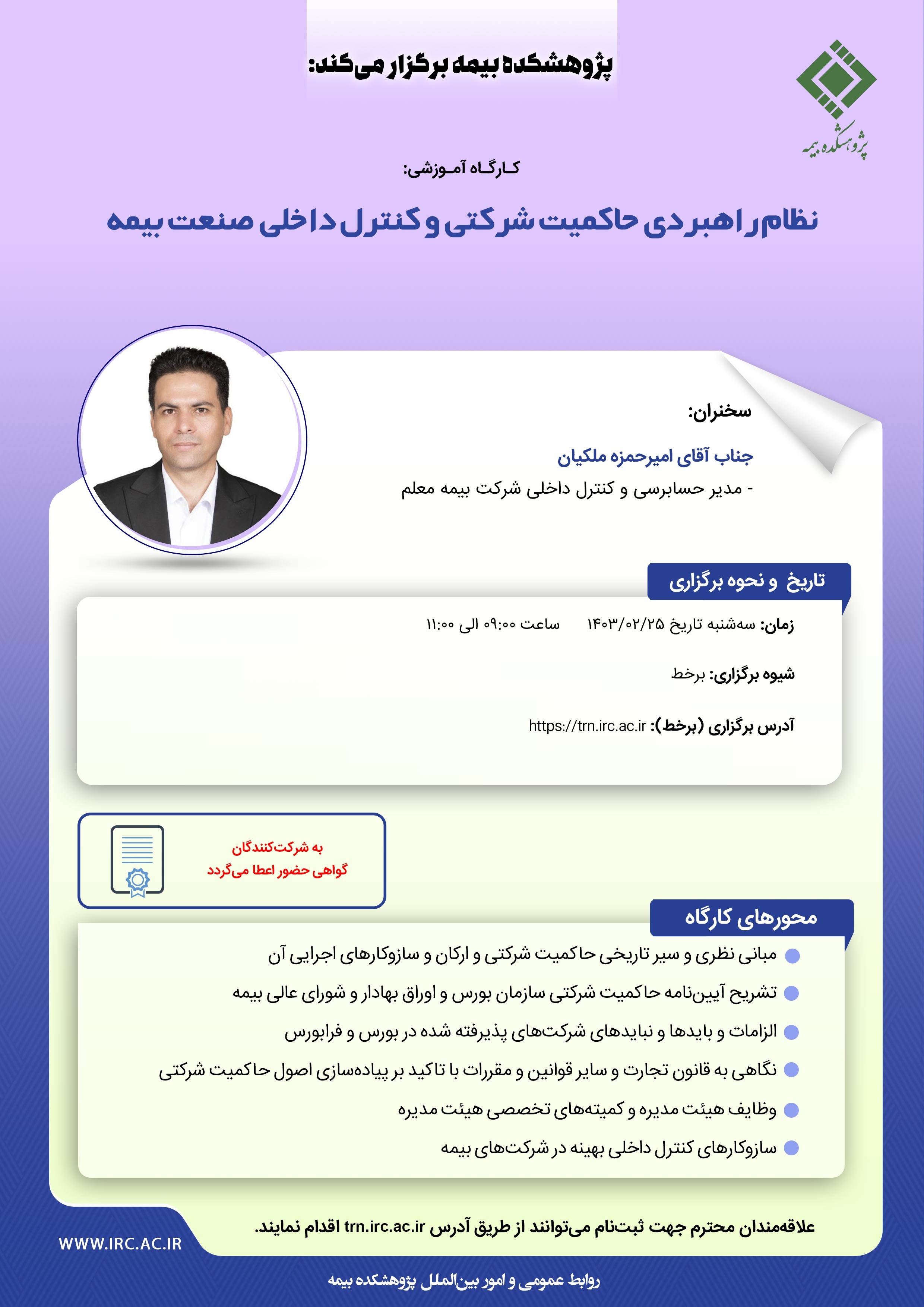 کارگاه آموزشی نظام راهبردی حاکمیت شرکتی و کنترل داخلی صنعت بیمه