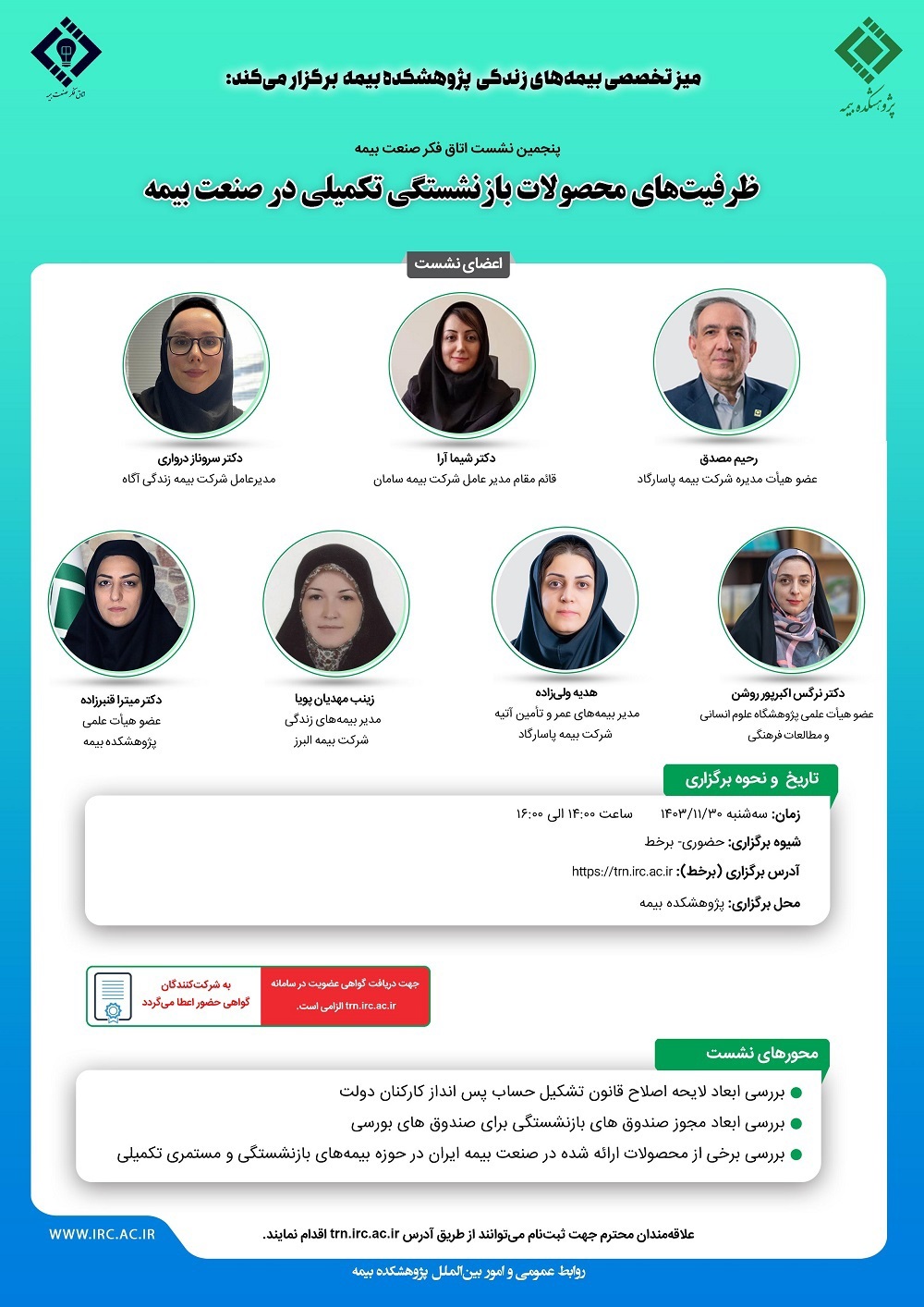 پنجمین نشست اتاق فكر صنعت بیمه با عنوان: ظرفیت های محصولات بازنشستگی تكمیلی در صنعت بیمه
