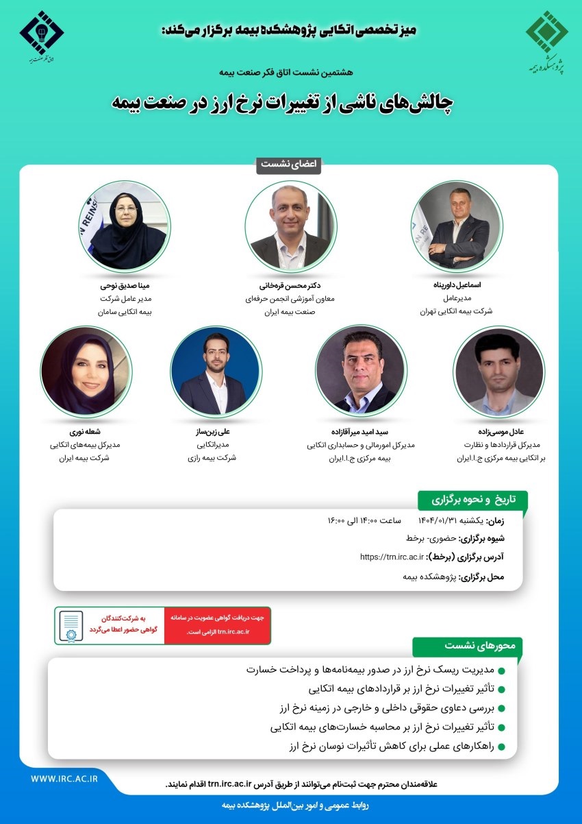 هشتمین نشست اتاق فكر صنعت بیمه با عنوان چالشهای ناشی از تغییرات نرخ ارز در صنعت بیمه