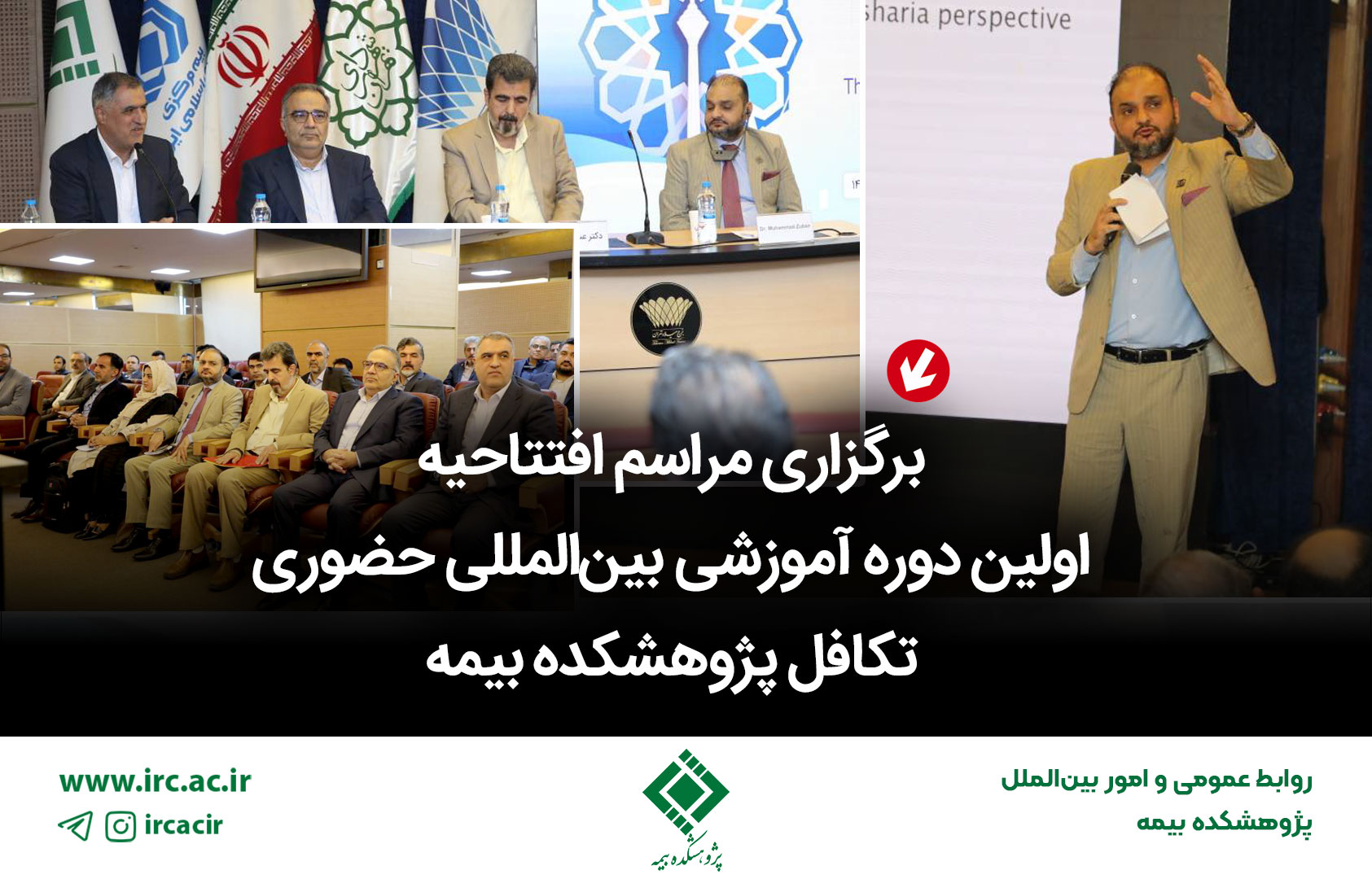 به گزارش روابط عمومی و امور بینالملل پژوهشکده بیمه، اولین دوره آموزشی بینالمللی تکافل پژوهشکده بیمه با حضور مهندس مجید بهزادپور رئیس کل بیمه مرکزی ج.ا.ایران، دکتر محمد مهدی عسگری رئیس پژوهشکده بیمه، اعضای هیات عامل و مدیران بیمه مرکزی، دکتر سیدمحمد کریمی دبیرکل سندیکای بیمهگران ایران و جمعی از مدیران عامل، مدیران ارشد و کارشناسان شرکتهای بیمه و همچنین دکتر محمد زبیر مقال رئیس مرکز بانکداری و اقتصاد اسلامی و شورای پژوهشی حلال لاهور پاکستان و خانم یسری رمضان مدیر هماهنگی پژوهشی در دانشگاه بینالمللی پاکستان، روز سهشنبه ۳ آبانماه ۱۴۰۱ برگزار شد.
