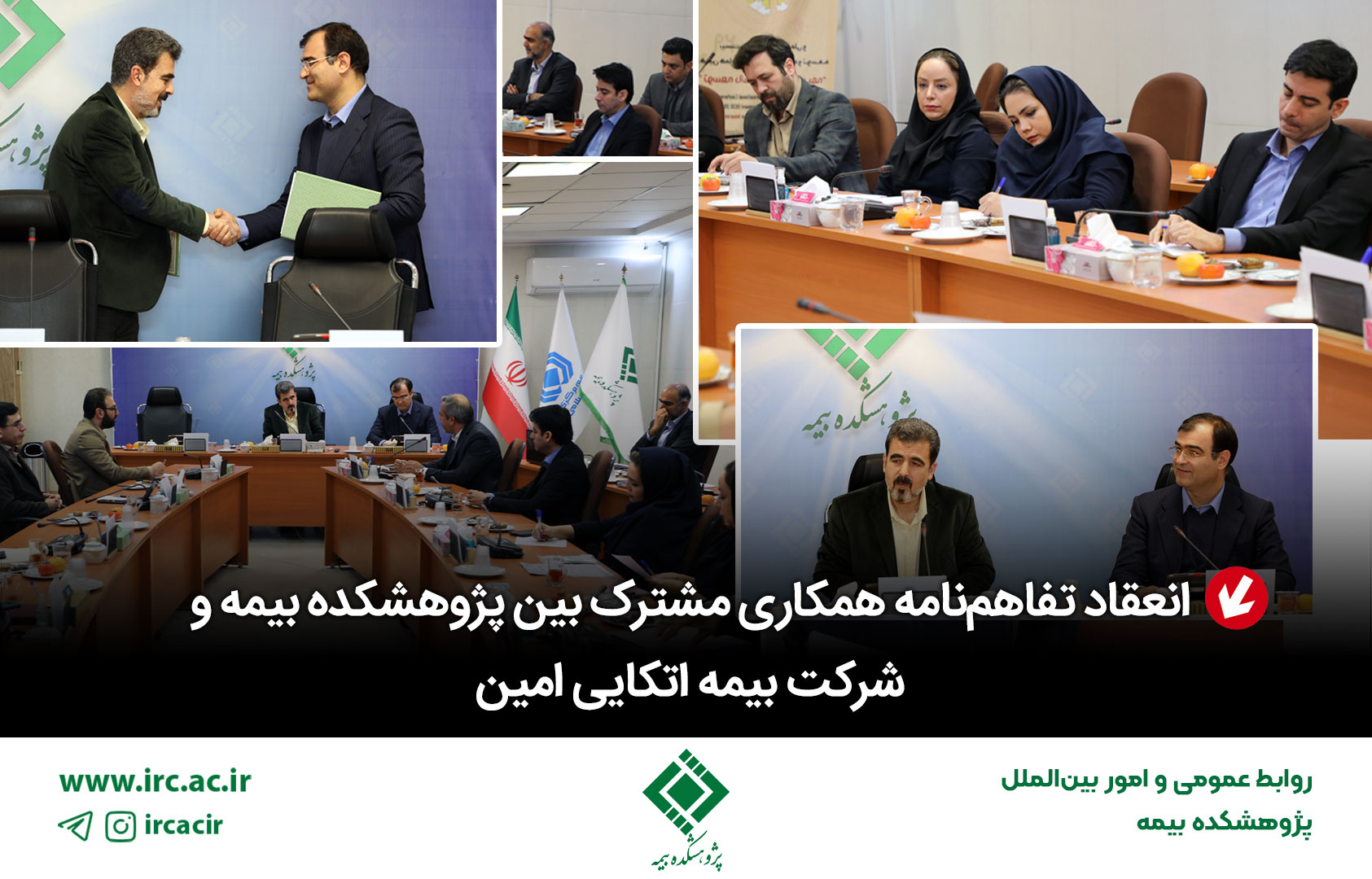 گفتنی است در پایان این نشست تفاهم‌نامه همکاری مشترک بین پژوهشکده بیمه و شرکت بیمه اتکایی امین مشتمل بر 6 ماده به امضای طرفین رسید. هدف از تنظیم و اجرای این تفاهم‌نامه، ایجاد زمینه‌های همکاری و استفاده از توانایی‌های علمی و اجرایی طرفین به منظور گسترش همکاری‌های علمی، آموزشی، پژوهشی و مطالعاتی و همچنین ضرورت ایجاد گفتمان مشترک در جهت ارتقای کیفیت فعالیت‌های پژوهشی مورد نیاز صنعت بیمه عنوان شده است و به موجب آن، طرفین ضمن همکاری و مشارکت در اجرای طرح‌های مطالعاتی و پژوهشی، در زمینه مشاوره علمی و صنعتی، تبادل اطلاعات و تجربیات، طراحی و اجرای دوره‌های آموزشی داخلی و خارجی، انتشار کتب، مقالات و نشریات، تالیف، تدوین و ترجمه کتب و اسناد علمی، حمایت ازپایان‌نامه‌های دانشجویی، تبادل امکانات، آمار و داده‌ها، تبادل اطلاعات و اطلاع‌رسانی، برگزاری رویدادهای، اجرای فرصت مطالعاتی، برگزاری آزمون‌ها و دوره‌های کارآموزی، طراحی، اجرا و توسعه محصولات نوین بیمه‌ای و محصولات مالی اسلامی، تکافل و تکافل اتکایی و ... همکاری‌‌های مشترک خواهند داشت.