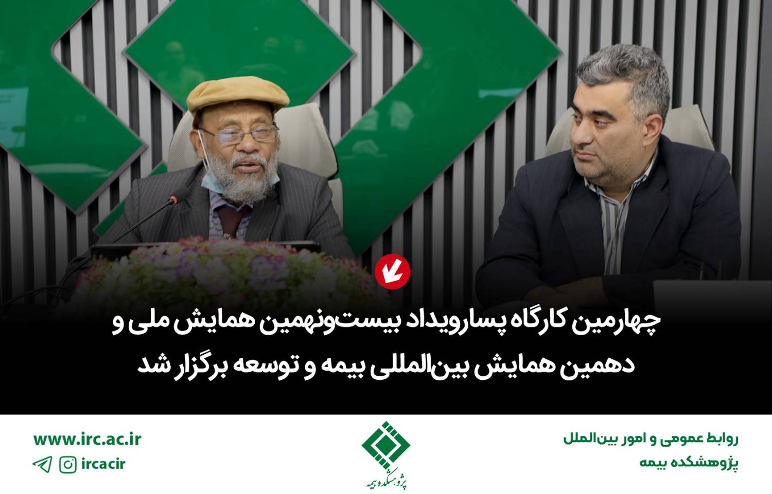 عصر امروز سه‌شنبه ۱۵ آذرماه ۱۴۰۱، چهارمین كارگاه‌ پسارویداد بیست‌و‌نهمین همایش ملی و دهمین همایش بین‌المللی بیمه و توسعه به صورت حضوری در محل پژوهشکده بیمه برگزار شد.