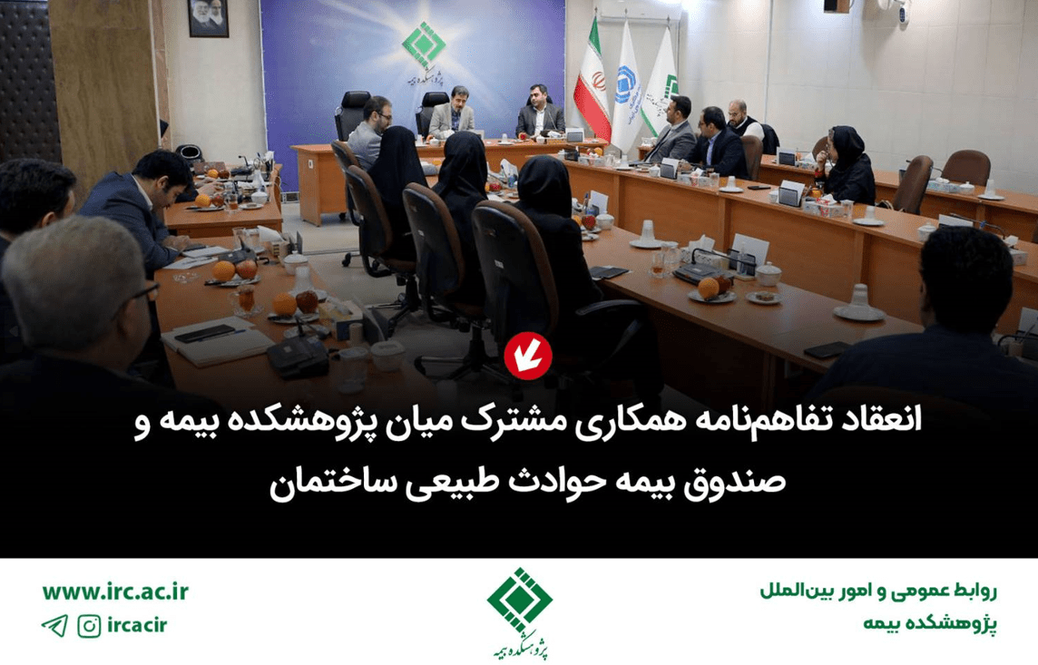 به گزارش روابط عمومی و امور بینالملل پژوهشکده بیمه، به منظور تعامل، تبادل تجربیات علمی و فراهم آوردن زمینههای همکاری در جهت توسعه تحقیقات کاربردی و مشاوره علمی و طی نشستی با حضور دکتر محمد مهدی عسگری رئیس پژوهشکده بیمه، دکتر مهدی اسماعیلی رئیس هیئت عامل صندوق بیمه حوادث طبیعی ساختمان و مدیران ارشد دو مجموعه، تفاهمنامه همکاری مشترک میان پژوهشکده بیمه و صندوق بیمه حوادث طبیعی ساختمان به امضا رسید.
