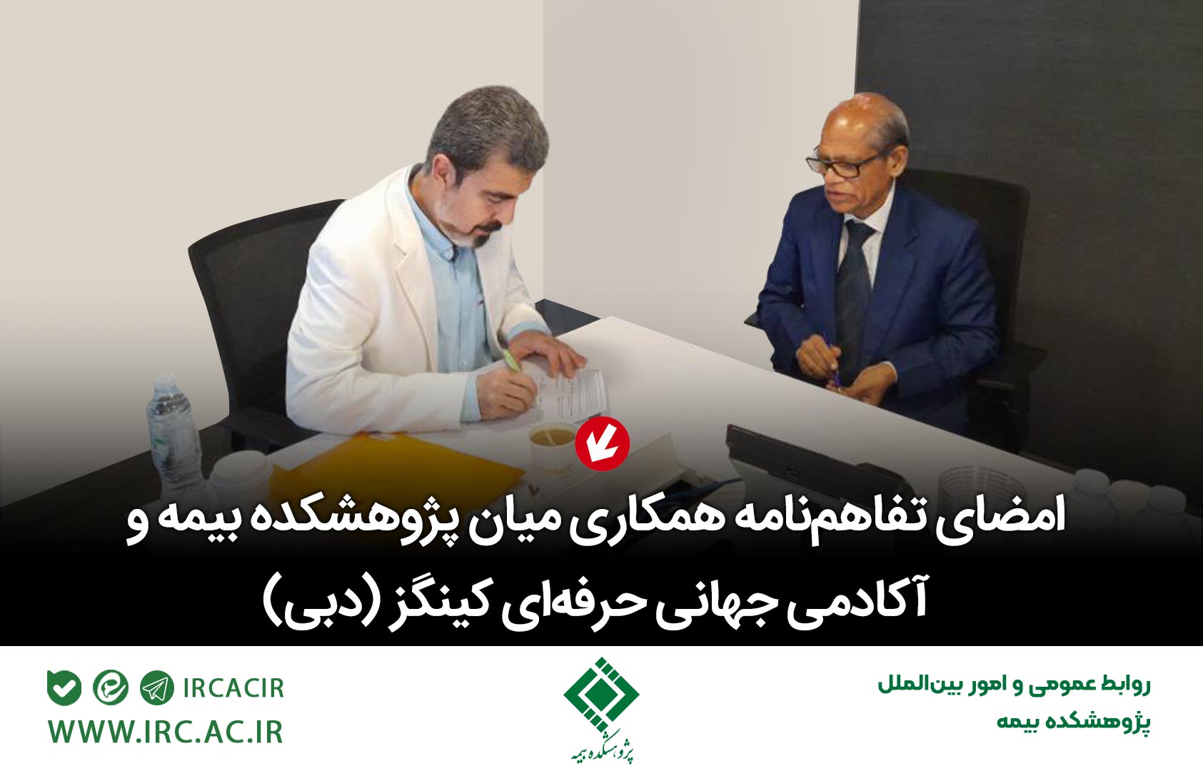 در نشست امضای تفاهمنامه میان پژوهشکده بیمه و آکادمی جهانی حرفهای کینگز که روز سهشنبه 9 اسفند 1401 (28 فوریه 2023) ساعت 16:00، به میزبانی آکادمی جهانی حرفهای کینگز و با حضور دکتر محمدمهدی عسگری رئیس پژوهشکده بیمه، دکتر شهرام رضا پور مشاور بینالملل رئیس پژوهشکده بیمه، بال گوپال گودرائو مدیرعامل و رئیس هیئت مدیره آکادمی حرفهای جهانی کینگز، رونالد دسوزا مدیر عملیات آکادمی، آقای سانگسِن، رئيس اجرائی آکادمی، خانم جوانا، مدیر منطقه منا آکادمی و آقای استفان، رئیس بازاریابی آکادمی برگزار شد، دکتر عسگری با معرفی پژوهشکده بیمه و تأکید بر اهمیت انعقاد تفاهمنامه و همکاری مشترک پژوهشکده بیمه و آکادمی کینگز به معرفی هیئت ایرانی پرداخت و ابراز امیدواری کرد که اولین گروه از دانشپژوهان ایرانی پس از ماه مبارک رمضان به آکادمی کینگز اعزام شوند.