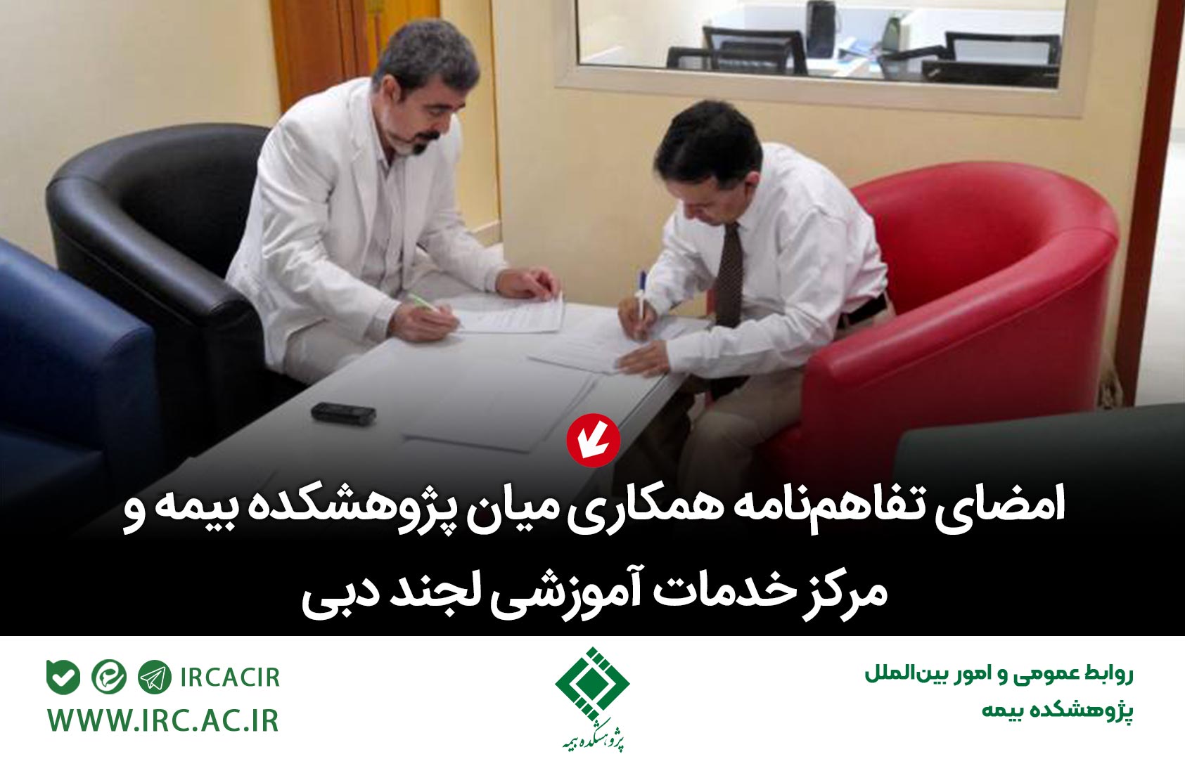 امضای تفاهم‌نامه همكاری میان پژوهشكده بیمه و مركز خدمات آموزشی لجند دبی