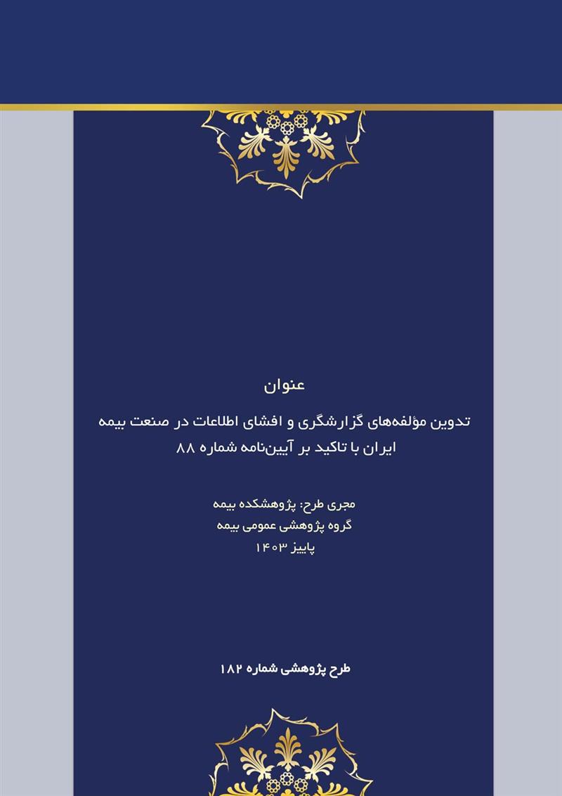 با توجه به اهمیت گزارشگری و افشای اطلاعات برای نهاد نظارتی، بیمه گذاران، سرمایه گذاران و سایر ذینفعان و ضرورت تعیین نمودن سطح افشای کافی، هدف نهایی پژوهش تدوین مولفههای گزارشگری و افشا در صنعت بیمه در ایران است. بدین منظور ابتدا چالشهای آییننامه 88 شناسایی میشود. سپس مروری بر مقررات گزارشگری و افشای اطلاعات بیمه ای در سطح جهان انجام میشود پس از استخراج اولیه مولفههای گزارشگری و افشا، با استفاده از نظرات متخصصین، مولفه های افشا در ایران شناسایی میشود.