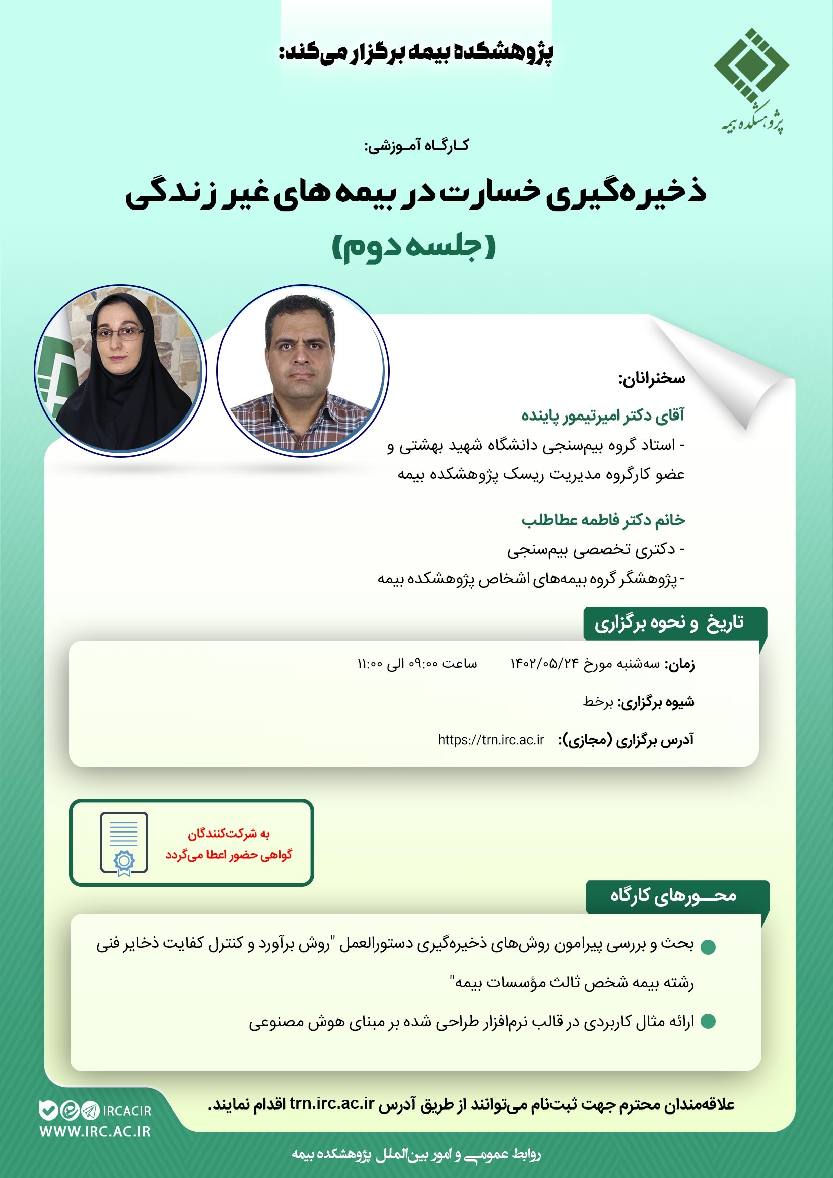لینک اولین جلسه كارگاه آموزشی ذخیرهگیری خسارت در بیمههای غیرزندگی