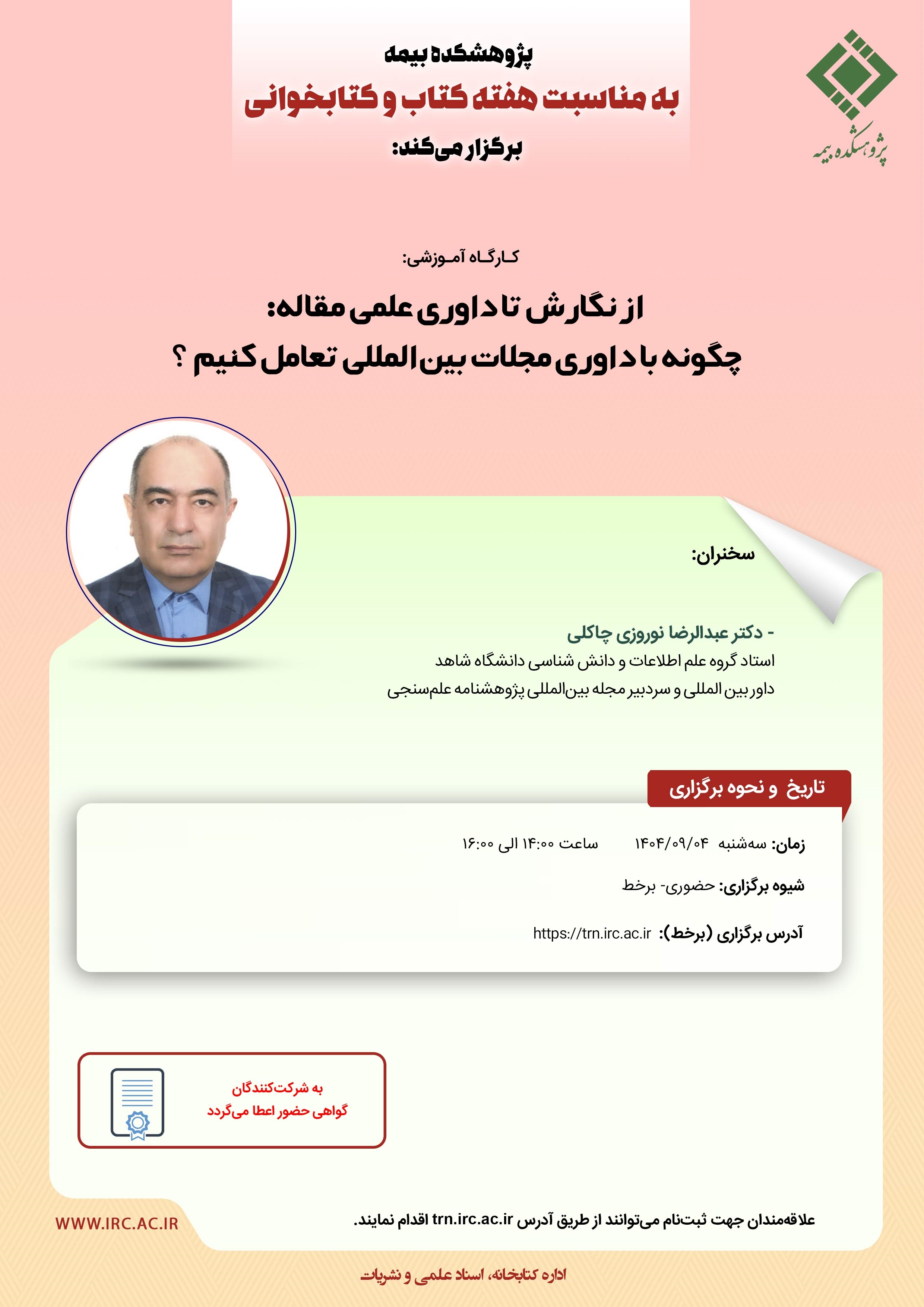 كارگاه آموزشی "از نگارش تا داوری علمی مقاله: چگونه با داوری مجلات بین المللی تعامل كنیم؟"
